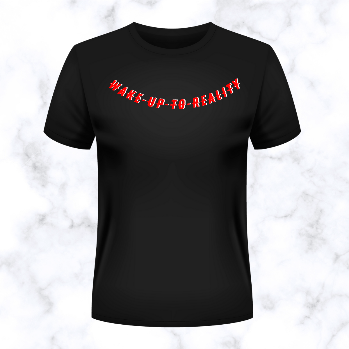 Description:- Make a bold, direct statement with this all-black tee featuring the impactful “WAKE-UP-TO-REALITY” text in a distressed, curved red font. Its minimal design is perfect for a sleek, modern streetwear look.